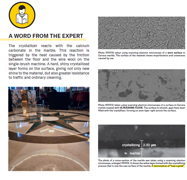 광택 타일을 청소할 때는 포세린과 세라믹 타일 청소 시 주었던 조언을 따르되, 물기가 타일 표면에 고이지 않도록 주의하는 것이 특히 중요합니다. 청소 후에는 타일을 꼼꼼하게 건조해 주어야 합니다. 이를 위해 부드러운 마이크로파이버 타월이나 전용 걸레를 사용하면 됩니다. 이렇게 건조 작업을 하면, 광택 타일의 마지막 단계인 광내기(버핑)를 할 때 훨씬 수월해집니다.