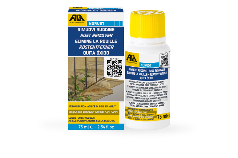 NORUST는 대리석, 화강암, 콘크리트 및 기타 천연석 표면의 녹 얼룩 제거를 위해 설계되었습니다. 야외 시설물이나 정원 장비로 인해 발생하는 녹 잔여물은 일반 클리너로는 제거하기 어려운 경우가 많지만, NORUST의 강력한 포뮬러는 까다로운 녹 얼룩을 신속하게 제거합니다. 농도가 높은 제형 덕분에 얼룩에 효과적으로 달라붙어, 표면을 손상시키지 않고도 녹 얼룩을 없애줍니다.