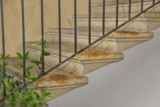 콘크리트 계단의 녹 얼룩