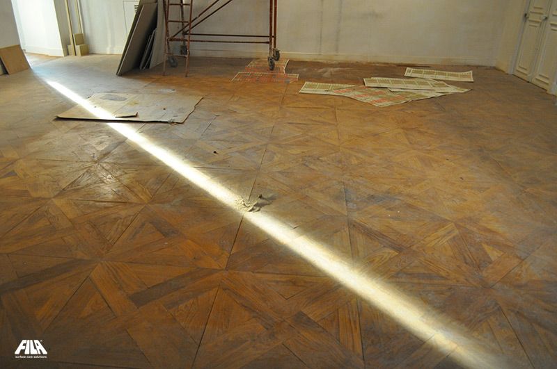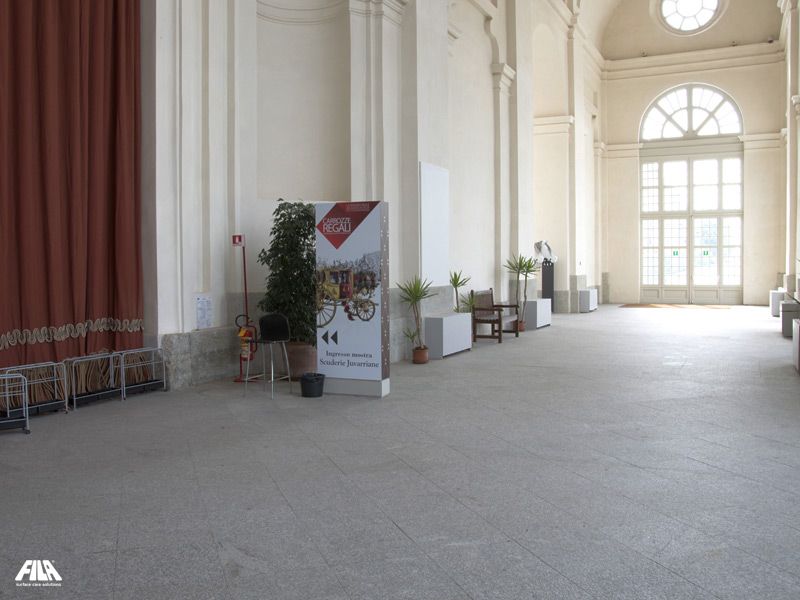 Venaria Reale은 1997 년 유네스코 세계 문화 유산으로 지정된 건축과 조경의 걸작 인 Piedmont에서 가장 중요한 Sabaudian 거주지 중 하나 인 사냥 별장입니다. 그러나 방문객의 특별한 교통을 통해이 특별한 방문객은 실내 표면을 마모 시켰습니다 : 우리의 마스터 트리트먼트 전문가 인 Edy와 Vittorio Bergantin이 수행 한 작업은 FILA 제품의 능숙한 사용 덕분에 “Sala delle Arti”(1,500m²)의 고대 쪽모이 세공 마루 바닥, “Salone di Diana”및 “Castelvecchio”(3,000m²)의 수제 테라코타 바닥, Valletti a Piedi 방의 분쇄 타일 cocciopesto에있는 것들에 새로운 생명을 불어 넣었습니다. Sala dei Fagioli”(800m²). 특히 쪽모이 세공 마루의 바니시는 방문객의 발에 마모되어 너무 심하게 손상되어 샌딩이 지금까지 제안 된 유일한 해결책이었습니다. 그러나 당사의 트리트먼트 전문가는 천연 가역성 재료를 사용하여 대안을 제시했습니다. 먼저 SOLV 왁스 제거 세제로 표면을 탈지한 다음 유색 왁스를 여러 번 코팅하여 바닥의 원래 광택과 색상을 복원했습니다. 이 절차는 특히 문화재청에서 인기가 많았는데, 문화재청은 이 방안을 내부 특별 유지 관리 규정에 규칙으로 삽입함으로써 승인 도장을 찍었습니다.