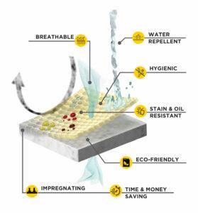 보호 장치는 미세 모공을 채워 얼룩과 냄새를 유발하는 세균이 앉을 장소를 줄입니다.