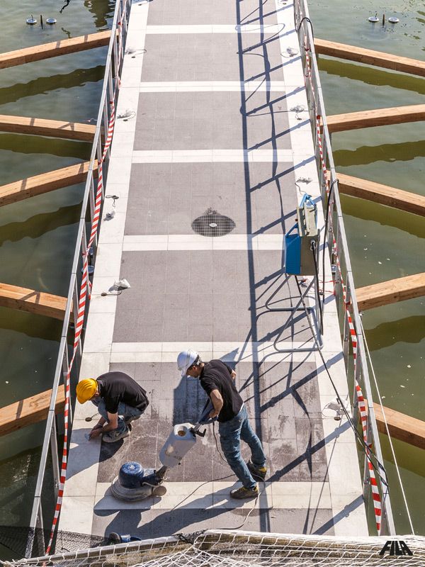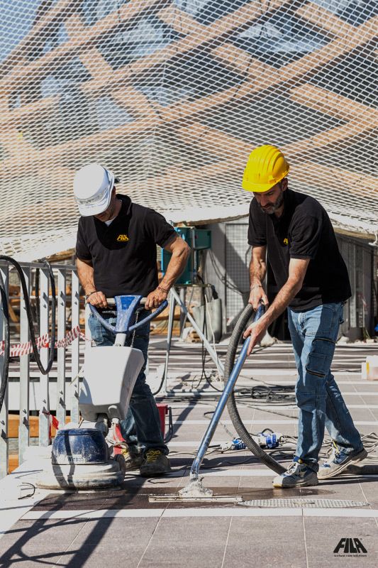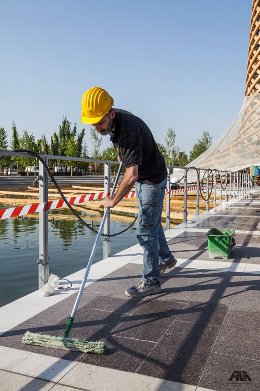 이 설치물을 기획한 Consorzio Orgoglio Brescia의 스폰서인 Fila Surface Care Solutions는 밀라노 엑스포의 상징인 생명의 나무에 대한 또 다른 권위 있는 기여를 담당하고 있습니다. 산책로와 나무의 거대한 바닥은 FILA가 자재 공급업체(파트너 F.lli Moncini 및 Porfido F.lli Pedretti Spa)와 협력하여 550m² 면적에 친환경 제품으로 보호 처리를 제공한 곳입니다. 석재를 그라우팅하기 전에 재료를 세척하고 흡수성 표면용 수성 보호제인 PRW200으로 전처리하여 그라우팅의 접착력을 변경하지 않고 쌓는 동안 생성된 먼지로부터 석재를 보호하고 나중에 청소를 훨씬 쉽게 했습니다. 설치 후 표면을 DETERDEK PRO(1:10 희석)로 세척했으며, 이는 모르타르, 석회질, 콘크리트, 그라우팅, 천연 페인트 및 일반적으로 건설 먼지와 모든 건축 현장 먼지에서 박힌 잔류물을 제거하는 Fila 산 디스케일러입니다. 이 청소는 두 종류의 돌을 모두 원래의 아름다움으로 복원했습니다. 재료를 먼지로부터 보호하기 위해 MP90 Eco XTREME 고성능 무용제 얼룩 방지제가 적용되어 모든 종류의 마감 처리된 모든 종류의 자연석에 이상적입니다. 수성 포뮬러는 용제 기반 솔루션을 사용한 처리에 비해 적용 시간을 80% 크게 단축했으며, 이는 Expo와 같은 건물 시나리오에서 필수적인 요소입니다.