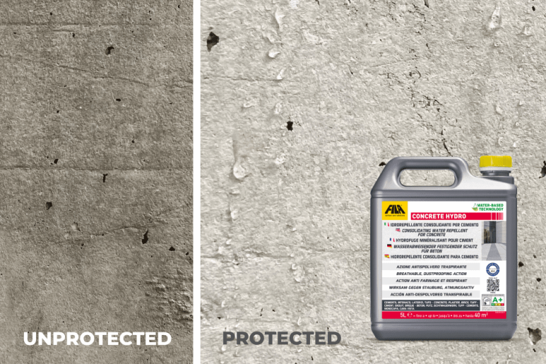 Concrete Hydro는 자재 표면에 필름을 형성하지 않아 자재가 “숨을 쉴 수” 있게 도와줍니다.