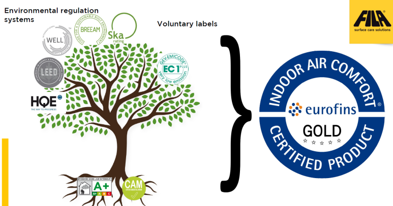 Indoor Air Comfort Gold: 낮은 VOC 배출을 보장하며, 환경과 작업자 모두에게 안전.