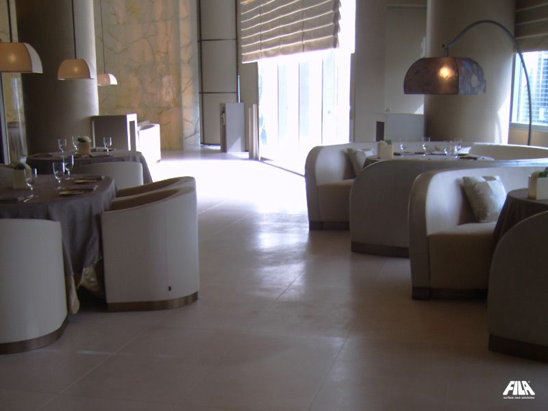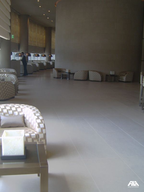 아르마니 호텔 두바이는 세계에서 가장 높은 건물인 상징적인 버즈 칼리파(Burj Khalifa)에 위치해 있습니다. 이 럭셔리한 호텔에서 FILA는 가장 권위 있는 내부 공간의 처리를 위한 제품과 기술을 제공했습니다. FILA는 호텔 욕실의 바닥재와 벽지를 위해 깔린 Azul Bateig 천연석과 Ermosa 석회석의 처리를 담당했습니다. Azul Bateig 석재는 설치로 인한 모든 잔류물을 제거하기 위해 물에 희석한 PS87 PRO로 세척했습니다. 그런 다음 수성 프로텍터 W68을 두 번 코팅하여 재료의 외관을 변경하지 않고 얼룩 방지 기능을 제공했습니다. Ermosa 석회암은 CLEANER PRO로 세척하고 FOB XTREME로 보호하여 물과 기름기 많은 얼룩에 대한 장벽을 만들었습니다. Green Bamboo 석회암을 레스토랑에 깔고 CLEANER PRO 중성 세제로 세척했으며, Black Granite 광택 및 크림 연마 마감 처리는 PS87 PRO로 세척하여 설치 중 남아있는 얼룩을 제거했습니다. 세 가지 재료 모두 FOB XTREME 얼룩 방지제로 방수 처리되어 모든 종류의 먼지로부터 보호되었습니다.