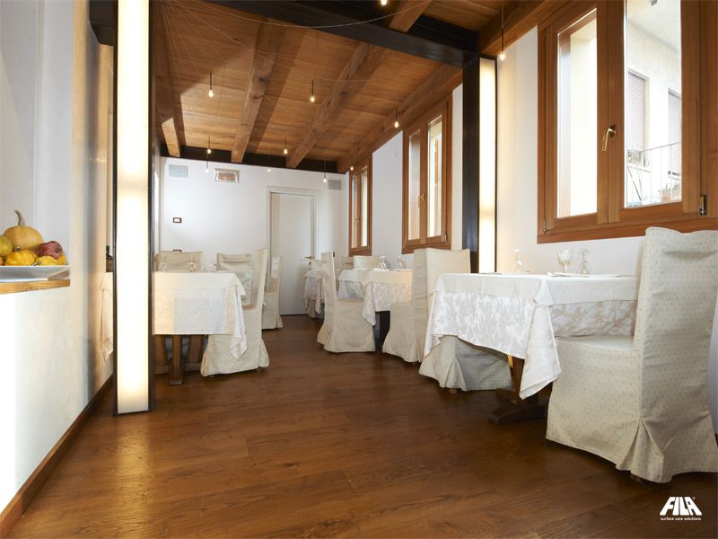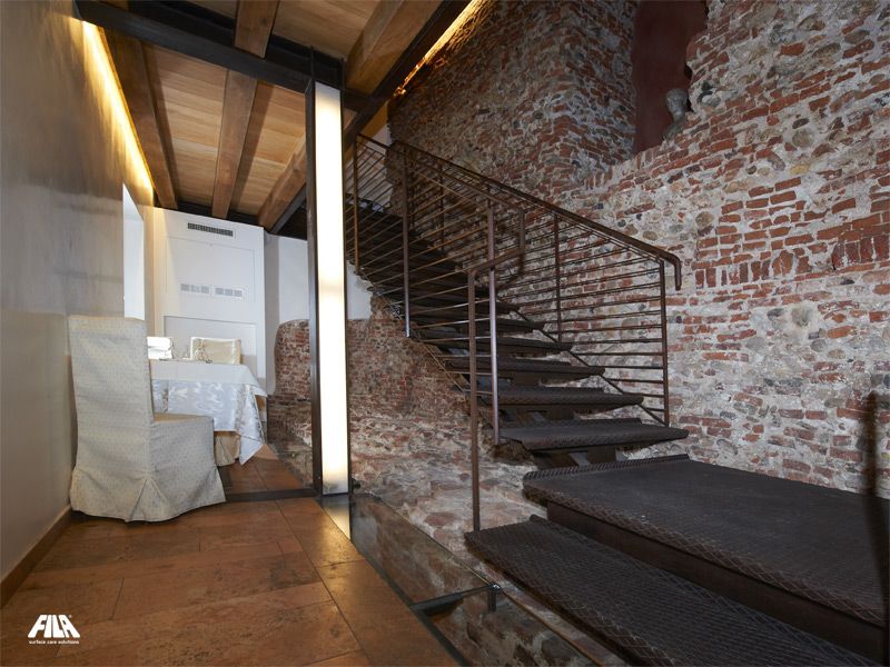 건축가 마우로 파롤리니(Mauro Parolini)에 의해 최근 복원된 카스텔프랑코 베네토(Castelfranco Veneto)의 레스토랑 라 토레(La Torre)는 휠라의 제품으로 처리되었습니다. 1966년에 문을 연 이 레스토랑은 설치자 알베르토 스가르보사(Alberto Sgarbossa)가 휠라 제품군의 부드럽고 생분해성이 높은 세제인 FILACLEANER로 세척한 후 FOB XTREME 덕분에 얼룩으로부터 보호된 붉은 석회화석의 넓은 표면을 전시하고 있습니다. 마지막으로, SATIN은 보호, 유지 및 동시에 완벽한 마감을 보장하기 위해 적용되었습니다. 이 베네토 마을의 유명한 고대 성벽 옆의 권위 있는 위치에 있는 레스토랑 La Torre는 몇 주 전에 다시 문을 열어 대중에게 새로운 화려함을 드러냈습니다.