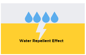 왼쪽에 처리된 영역은 물이 재료 내부로 침투하는 것을 방지하여 그 외관과 완전성을 유지합니다.