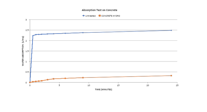 이 시험을 통해 CONCRETE HYDRO가 콘크리트 표면에 얼마나 효과적으로 물을 흡수하지 않게 하는지를 측정할 수 있습니다. FILA 혁신 센터의 테스트 결과, CONCRETE HYDRO로 처리된 콘크리트 표면은 물 흡수율이 현저히 감소하였으며, 거의 제로에 가까운 흡수 수준을 보여주었습니다.