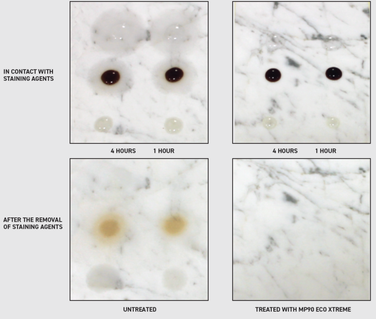 3. 자연스러운 석재 외관 유지: MP90 ECO XTREME은 석재의 자연스러운 외관을 유지하면서도 표면에 얇은 막이나 황변을 남기지 않아 석재의 본래 모습을 오래도록 유지할 수 있게 도와줍니다.