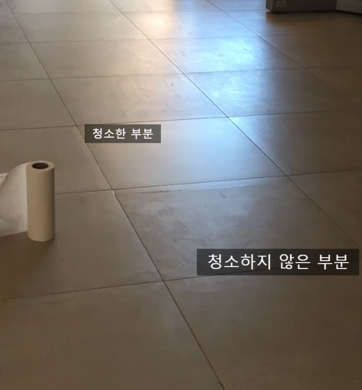 원래 담당자 분은 바닥에 백화현상이 일어난것 같다고 이것을 지우면 좋겠다고 말씀하셨어요.