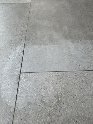 젖은 표면에 남아 있는 시멘트 줄눈 잔여물에 INSTANT REMOVER를 고르게 뿌립니다. 오염된 영역을 충분히 덮도록 뿌린 후 1-2분 동안 기다립니다 (텍스처 타일의 경우 5-10분 기다리세요). 기다린 후, 스펀지 플로트를 사용하여 표면을 청소합니다. 스펀지 플로트를 자주 헹궈서 깨끗하게 유지하고 느슨해진 줄눈 잔여물을 제거하세요.