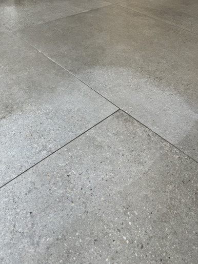 줄눈 잔여물이 표면에 남아 마르면 다양한 오염물, 예를 들어 기름, 발자국, 음식물 등이 표면에 달라붙기 시작합니다. 이러한 오염물질들이 점차 쌓이면서 우리가 피하고 싶은 줄무늬와 얼룩으로 변하게 됩니다.