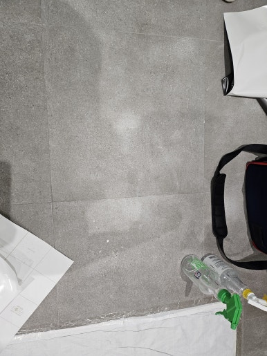문제는 줄눈을 시공한 직후 타일 표면을 바로 청소할 수 없다는 것입니다. 바로 청소하려고 하면 줄눈이 손상되어 타일 시공의 완성도가 떨어질 수 있습니다. 그래서 많은 시공자들은 물로 표면을 빠르게 닦아내고 작업이 끝났다고 생각합니다. 하지만 이 방법은 시간이 지나면서 줄눈 오염을 발생시키는 원인이 됩니다.