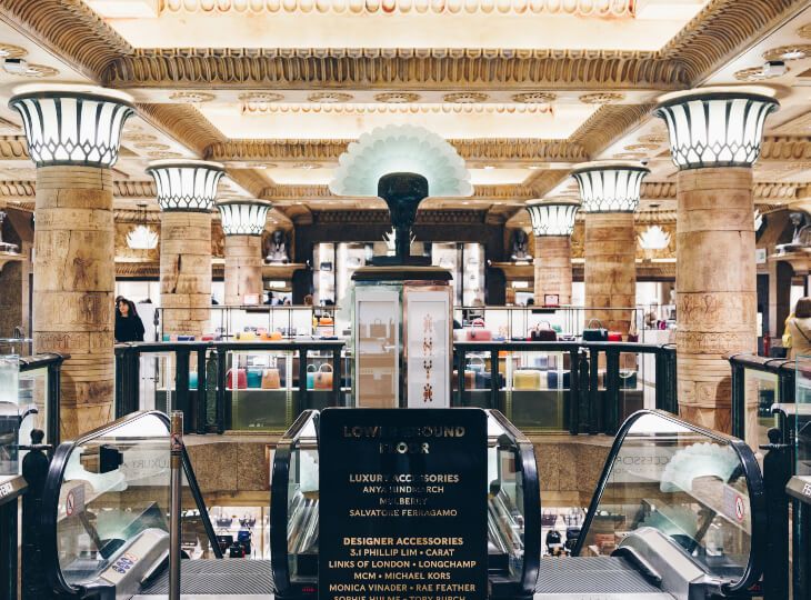 해러즈(Harrods)를 한 번도 방문해 본 적이 없다면, 7개 층에서 일상용품과 럭셔리 아이템을 찾을 수 있는 곳을 추천합니다. 100만 평방피트가 넘는 면적은 쇼핑이 많은 곳이며, 성수기에는 최대 300,000명의 고객이 매장을 방문할 수 있습니다. 해러즈(Harrods)의 역사는 1824년 일반 상인들의 상점으로 시작해 다채롭습니다. 그 후 이 매장은 동물원까지 갖추게 되었고, 1898년 해러즈(Harrods)는 브롬톤 로드(Brompton Road) 매장에 영국 최초의 에스컬레이터를 선보였습니다.